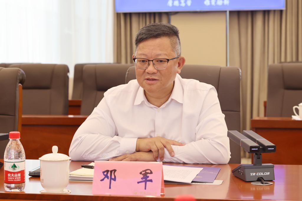 邓军代表学校对谢向阳董事长一行来访太阳成集团tyc151cc表示热烈欢迎,向一直以来对太阳成集团tyc151cc建设发展给予大力支持帮助的广西广播电视信息网络股份有限公司表示崇高敬意和衷心感谢。他指出,面对新形势新要求,广西广播电视信息网络股份有限公司在全方位转型、整体性赋能、革命性重塑等方面取得了突出的成绩,呈现了良好的发展态势。邓军详细介绍了太阳成集团tyc151cc办学历史、学科特色、人才培养、社会服务、发展优势以及面临发展关键期的发展理念和努力方向,希望进一步深化校企合作交流,全力以赴推动战略合作框架协议真正落地落实,助推校企双方通过合作共赢实现高质量发展。