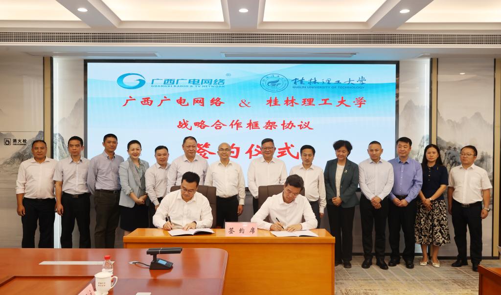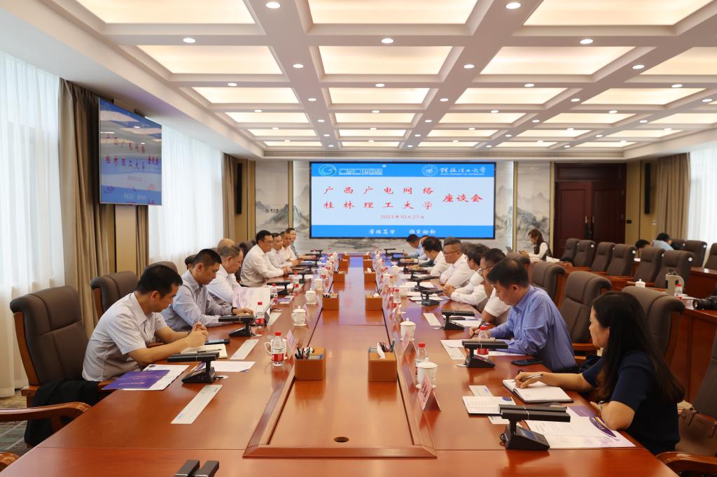 10月27日下午,广西广播电视信息网络股份有限公司党委书记、董事长谢向阳,党委委员、副总经理涂钧一行8人来访太阳成集团tyc151cc。学校党委书记邓军在雁山校区行知楼A406会议室热情接待了来访客人。校党委常委、纪委书记韦学敏主持座谈会。校党委常委、宣传部部长叶昊,校长助理、党办校办主任张成龙,信息科学与工程学院、公共管理与传媒学院、艺术学院、科技处、网络与信息中心等单位负责人参加座谈。