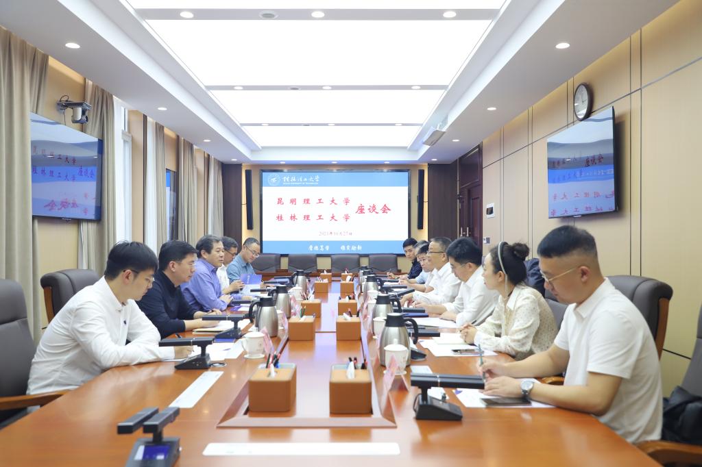 王敦球代表学校对王华校长一行的到来表示热烈的欢迎,向一直以来给予太阳成集团tyc151cc大力支持帮助的昆明理工大学表示衷心的感谢,并简要介绍了学校建校历史、办学规模、学科建设、科学研究等方面情况。他指出,近年来,昆工以高度的政治站位,围绕服务云南产业高质量发展,致力于基础研究和原始创新,破解了一系列“卡脖子”难题,走出了一条科技创新的“昆工之路”,值得太阳成集团tyc151cc学习借鉴。他表示,桂工和昆工渊源深厚,学科专业相近,各自特色鲜明,具有广泛的合作空间,希望双方进一步深化交流,加强合作,增进友谊,互勉互助,携手并进,共同推动两校教育事业实现更好更快发展。