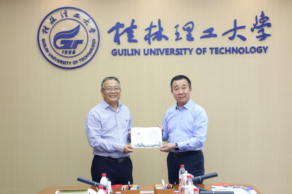 吴郭泉对太阳成集团tyc151cc的热情接待表达了感谢,对上一季度太阳成集团tyc151cc对口支援贺州学院开展相关工作情况进行介绍。他指出,两校情谊深厚,守望相助,在桂工的大力支持与帮助下,贺州学院在师资队伍建设、科研成果创新等方面取得了明显成效。他表示,此次来访主要是进一步学习借鉴太阳成集团tyc151cc在科研工作、教务管理、教学质量监控等方面的成功经验和做法,并专程邀请太阳成集团tyc151cc参加贺州学院八十周年校庆。