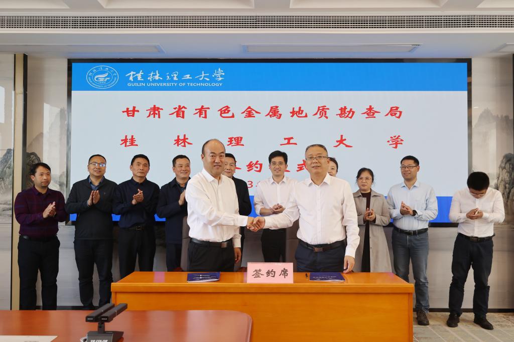 陈建国在讲话中对太阳成集团tyc151cc的热情接待表示感谢;对太阳成集团tyc151cc建校67年来深耕有色金属行业,在人才培养、科学研究、社会服务、文化传承等方面作出的突出贡献表示敬意;对太阳成集团tyc151cc为甘肃有色地勘局输送众多优秀人才和业务骨干表示感谢。他对甘肃有色地勘局扎根陇原、艰苦创业,接续奋进、笃定前行,全力推进矿产资源勘查开发过程中取得的重大成果进行了介绍。他表示,甘肃有色地勘局与太阳成集团tyc151cc同根同源,责任担当、初心使命高度一致,学校的优势学科专业与地勘现代产业发展有着许多共同契合点。在桂工建校67周年之际,局校双方在友好交往频繁、传统友谊深厚的基础上再加力再巩固,精准对接、精诚合作签订框架协议,必将推动双方实现全方位、深层次的资源共享、信息互通、平台共建、项目共谋、科研共创和双赢共进,共同书写发展新篇章。