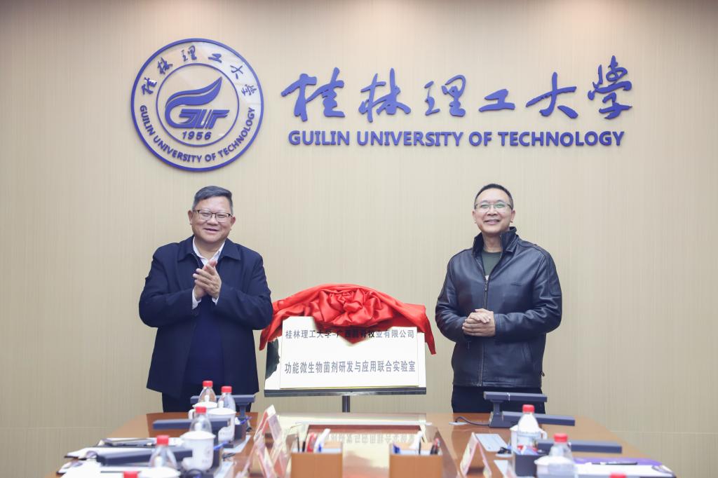 邓军书记、蒋轶群董事长共同为“太阳成集团tyc151cc-广西昌舜牧业有限公司功能微生物菌剂研发与应用联合实验室”揭牌